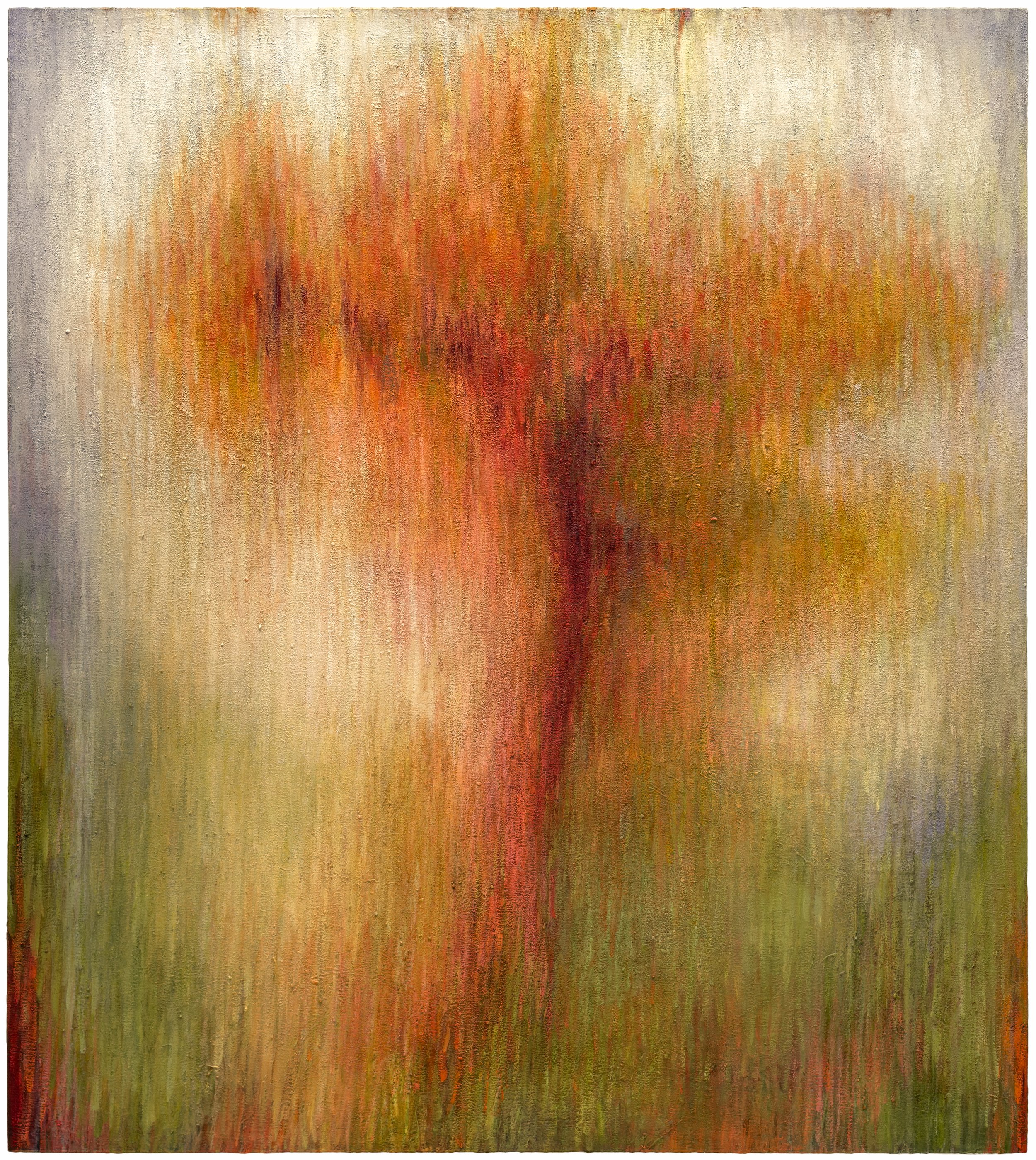 Red Tree 1, (detail), 2023-26,, oil, alkyd resin, and Gamsol on canvas, 79 x 70 inches